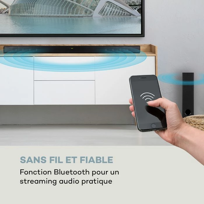 - Un son plein : puissante barre de son avec subwoofer puissant