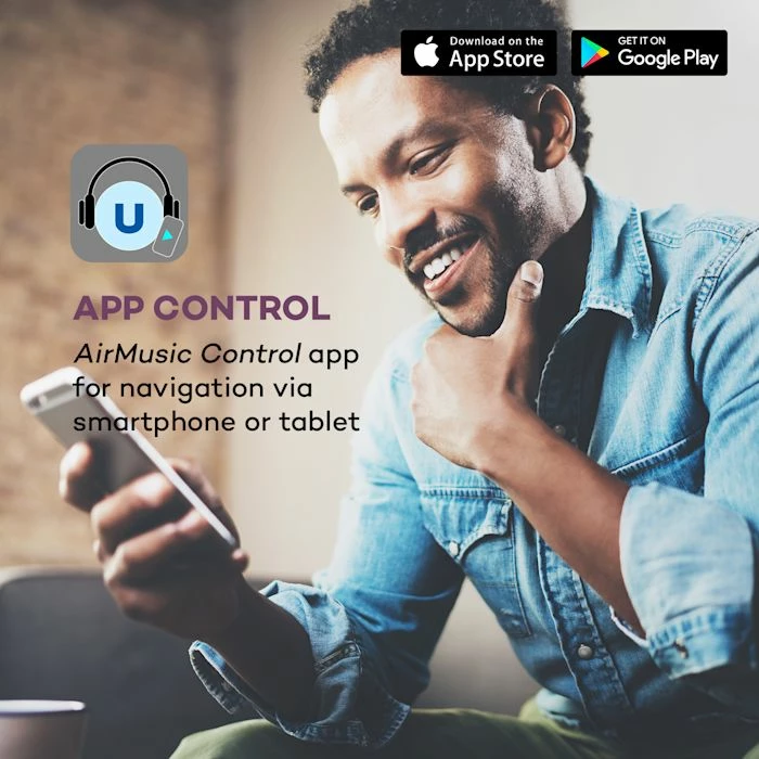 - ContrĂ´le par appli : AirMusic Control pour la navigation sur smartphone ou tablette
