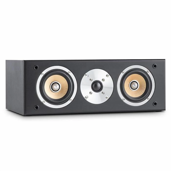 - Enceinte centrale passive à 2 voies avec deux woofers de 10cm (4″) avec Plug Phase, tweeter de 2,5cm (1″) et 60 watts RMS de puissance