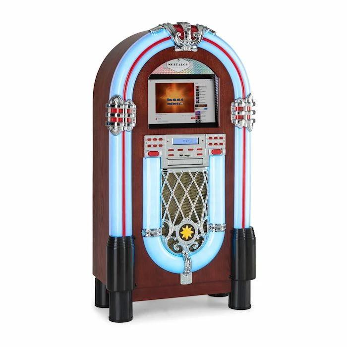 Rencontre entre un design nostalgique et les dernières technologies : le Jukebox auna Graceland Touch impressionne par son grand panneau de commande tactile, ses nombreuses options de lecture et son aspect incomparable.
