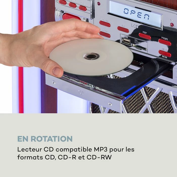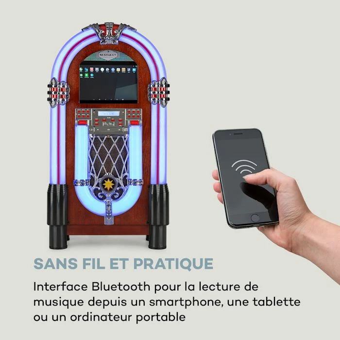 Rencontre entre un design nostalgique et les dernières technologies : le Jukebox auna Graceland Touch impressionne par son grand panneau de commande tactile, ses nombreuses options de lecture et son aspect incomparable.