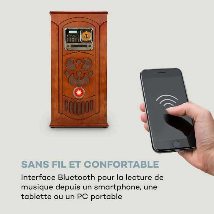 • Look rétro très élégant : boîtier au design détaillé avec placage bois élégant