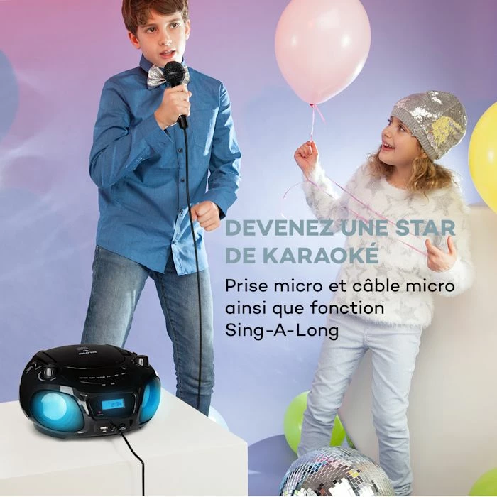 - KaraokĂ© : avec un micro pour enfants et fonction Sing-A-Long pour accompagner en chantant et s’entraĂ®ner