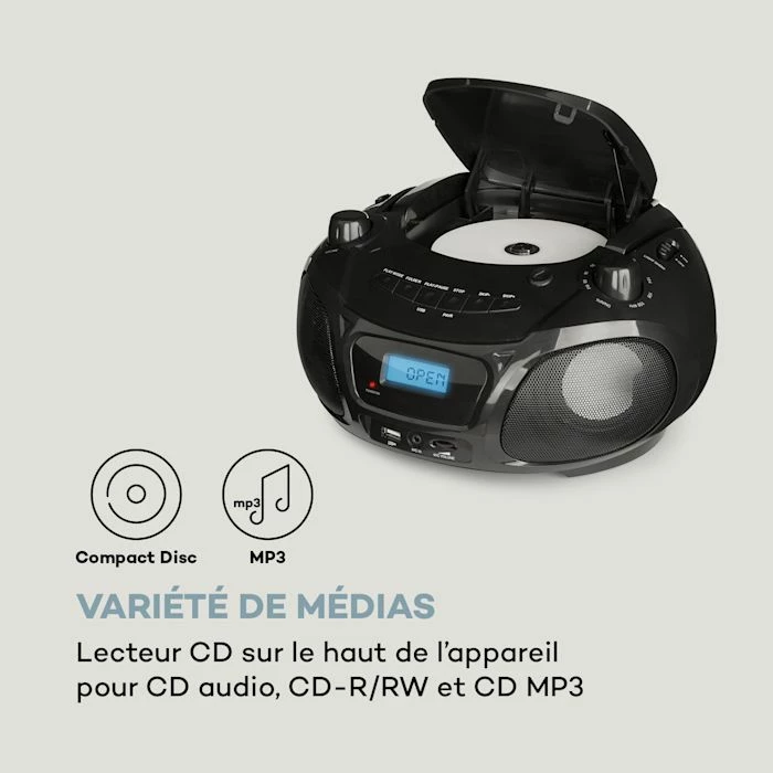 - formats audio pris en charge par le lecteur CD : CD audio, MP3 et CD-RW