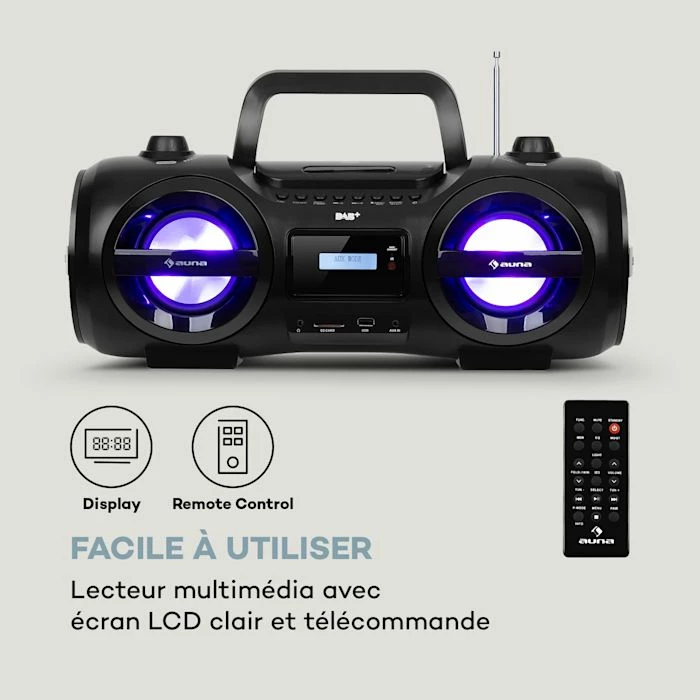 - Utilisation simple : lecteur multimédia avec écran LCD lisible et commande à distance