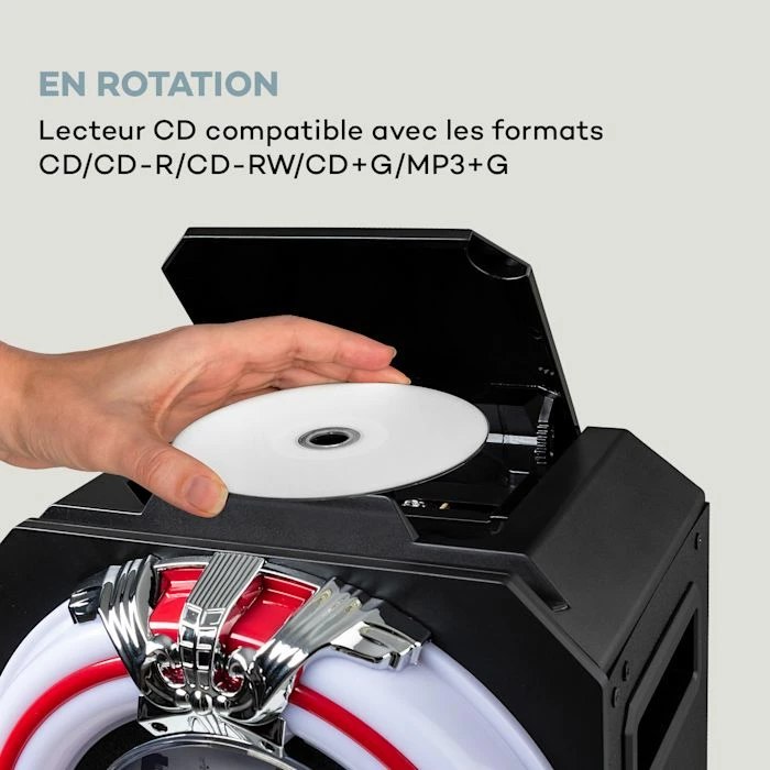 - C’est ici que ça se passe : le lecteur CD prend en charge les formats CD/CD-R/CD-RW/CD+G/MP3+G