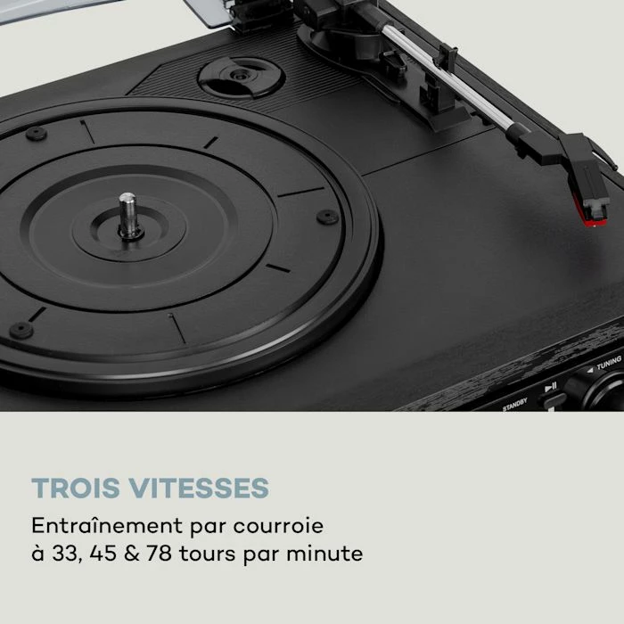 - 3 vitesses de lecture des disques : 33/45/78 tours par minute
