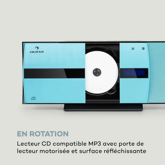 • C’est ici que ça se passe : Lecteur CD compatible MP3 avec panneau d’entraînement motorisé et surface réfléchissante