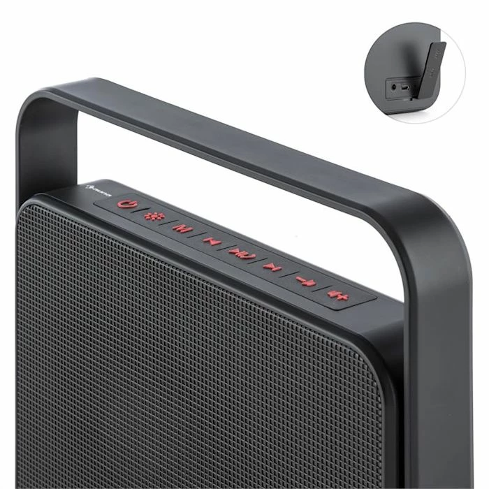 Véritable petite machine mobile à faire la fête, la Dazzl 5.0 de auna sème partout sur son chemin une ambiance festive où que vous l’emportiez. Son jeu de lumière LED multicolore est en cela le clou du spectacle, vous autorisant via la pression d’un seul bouton à créer des effets audiovisuels très convaincants. Différents programmes automatiques se trouvent ainsi à votre disposition, pour éclairer comme il se doit vos titres préférés.