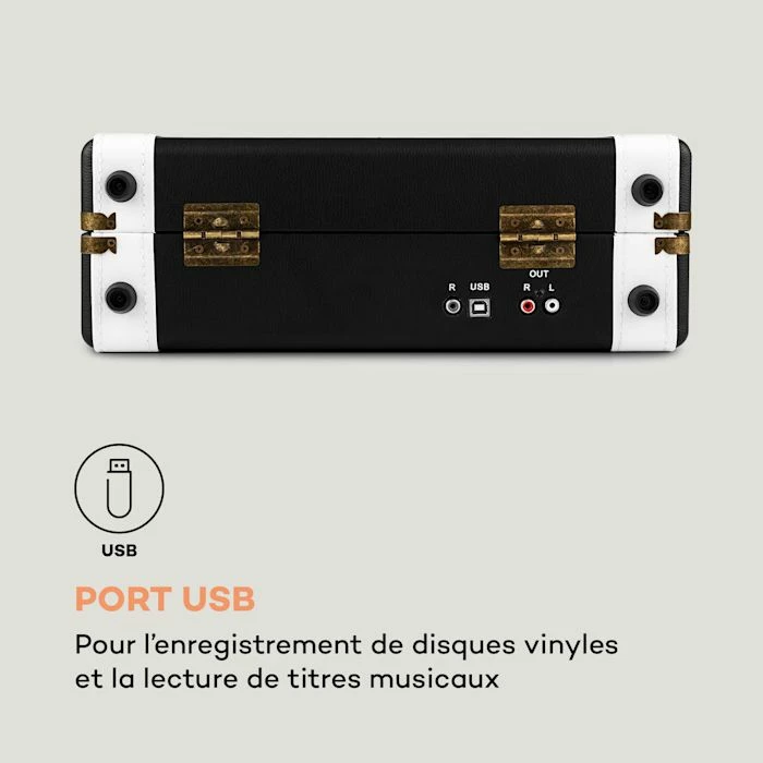 - Connexions: 1 x entrée USB, 1 x sortie RCA