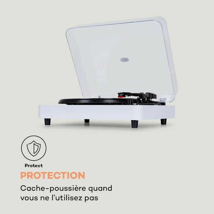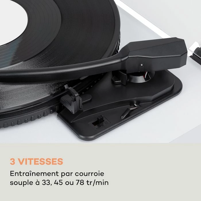 • 3 vitesses : entraînement silencieux par courroie à 33, 45 ou 78 tours/minute