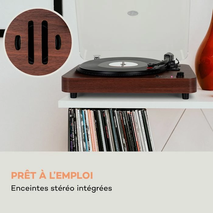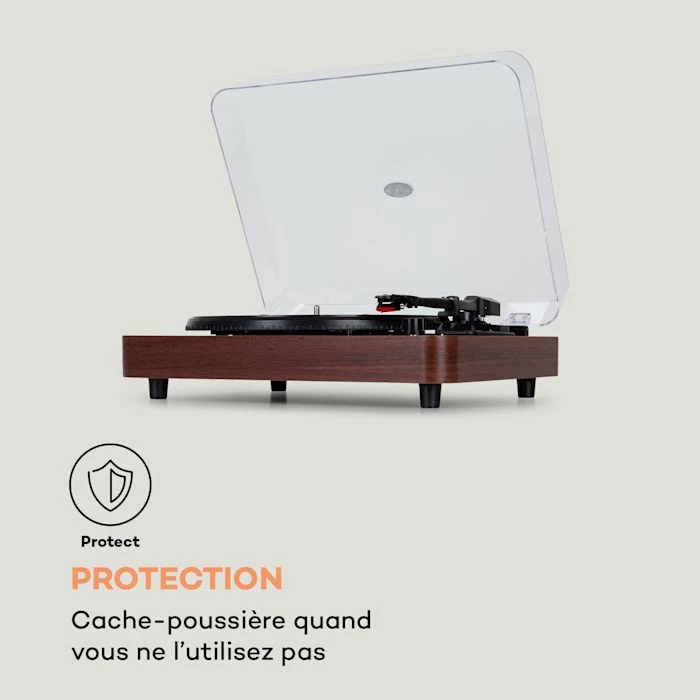 - 3 vitesses : entraînement silencieux par courroie à 33, 45 ou 78 tours/minute