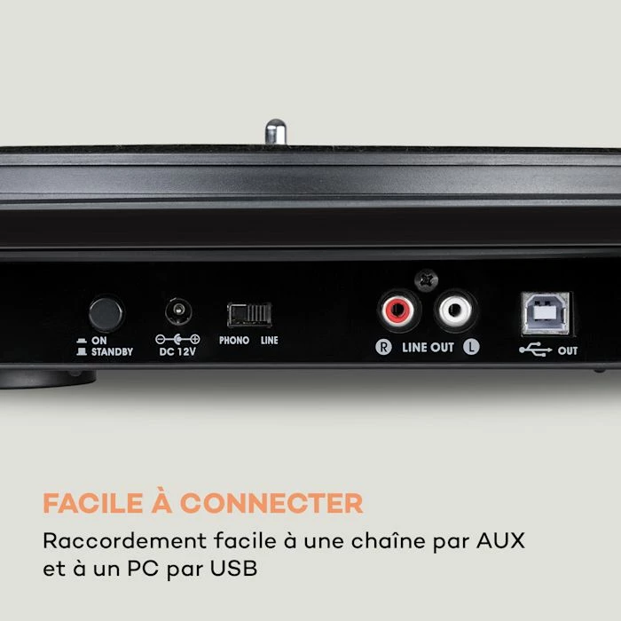 - Un plaisir d’écoute parfait : entraînement par courroie, tête de lecture MC AudioTechnica, auto stop et pitch control