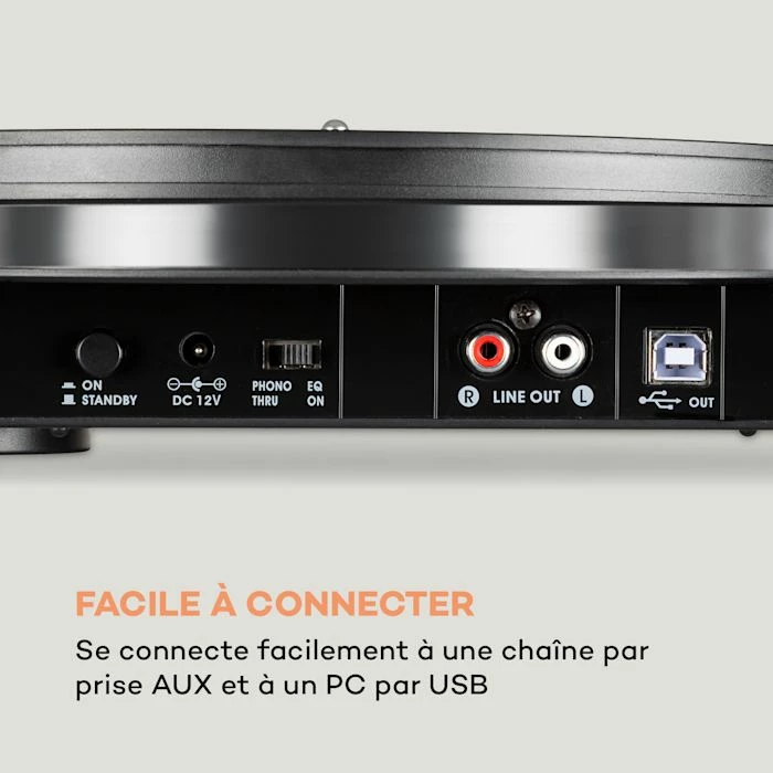 • Un plaisir d’écoute parfait : entraînement par courroie, tête de lecture MC AudioTechnica, auto stop et pitch control