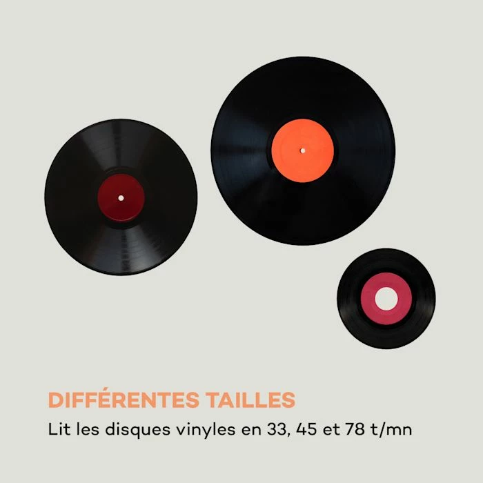 - Différents formats : lit les disques en 33, 45 et 78 T/min