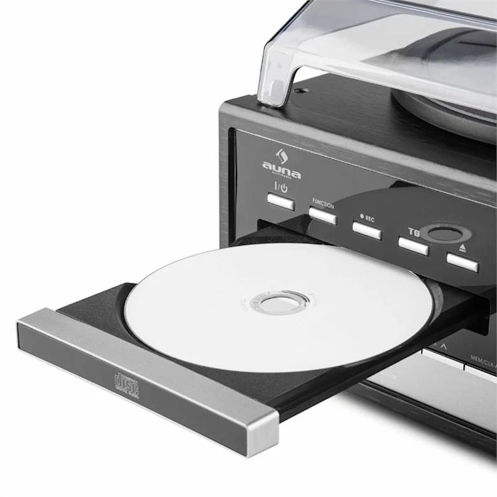 - Tourne-disque avec entraînement à courroie et lecteur de cassette sur le côté