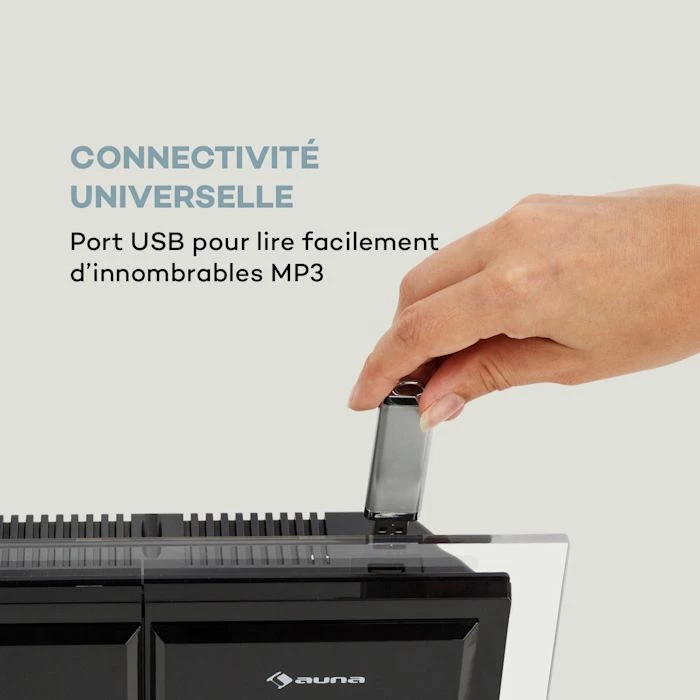 - Connectivité universelle : port USB pour lire sans problème quantité de MP3