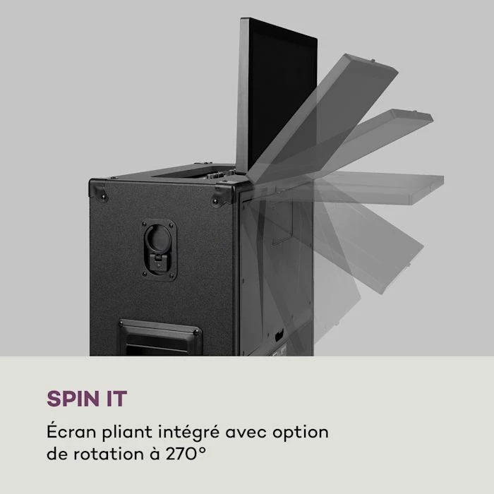 Le système karaoké auna Pro Spin 10 est l’appareil idéal pour tous les amateurs de karaoké grâce à ses roulettes, son grand écran tactile, ses 2 micros UHF sans fil et sa batterie performante.