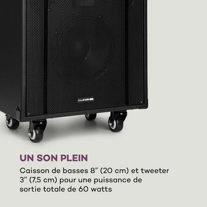 - Système karaoké : 2 microphones UHF sans fil pour une performance sans fil