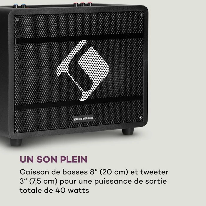 - Système karaoké : 2 microphones UHF sans fil pour une performance sans fil