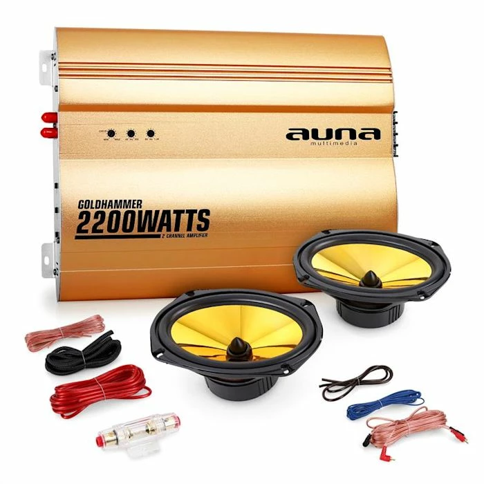 - Amplificateur de voiture 2 canaux doré avec 2200 watts de puissance