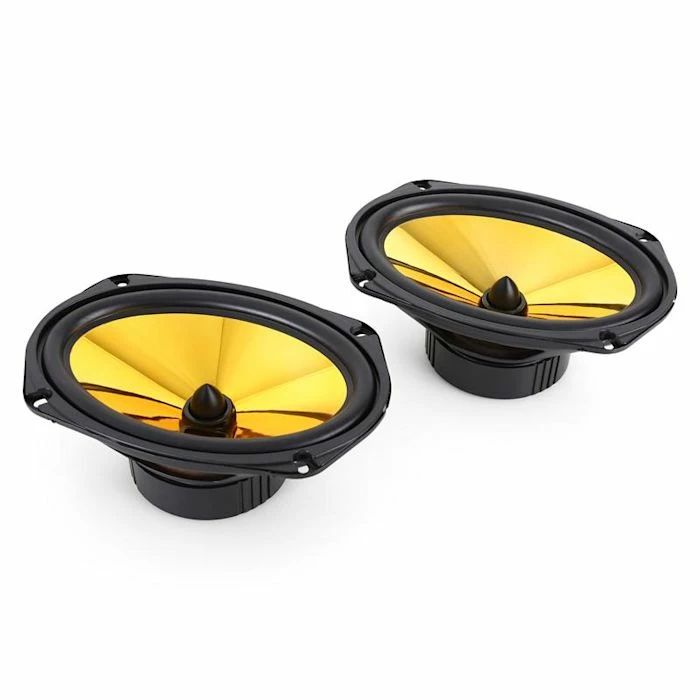 Set auto Hifi 2.0 série « Golden Race V3 » prêt à être installéavec un ampli auto hifi compact avec suffisamment de puissance pour les haut-parleurs 15x23cm (6×9″).