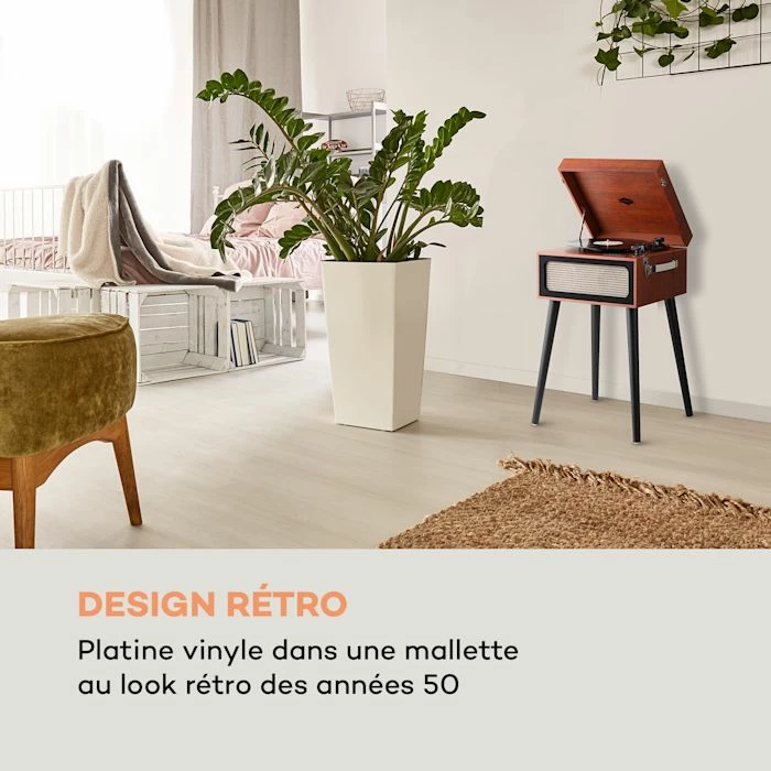 - Design rétro : platine vinyle design mallette dans le style des années 50