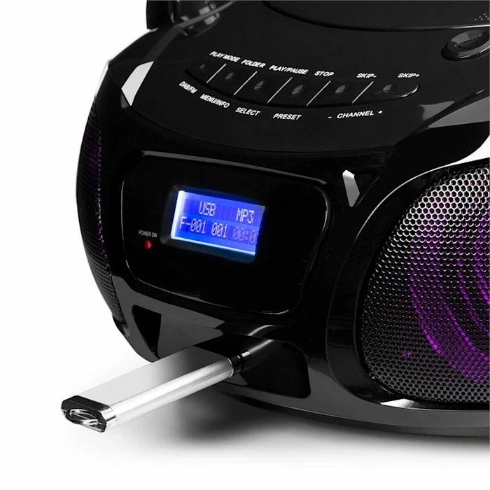 Polyvalent et cool ! Le système DAB compact auna Roadie impressionne avec son jeu de lumières LED en couleurs, et de plus il ne laisse pratiquement aucun format de lecture de côté.