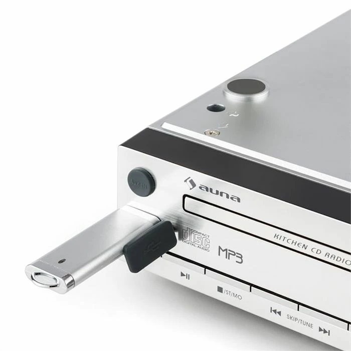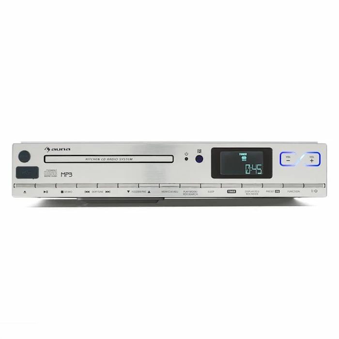 - Radio de cuisine encastrable argentée avec lecteur CD-MP3 et haut-parleurs à bande large (1,5″) intégrés