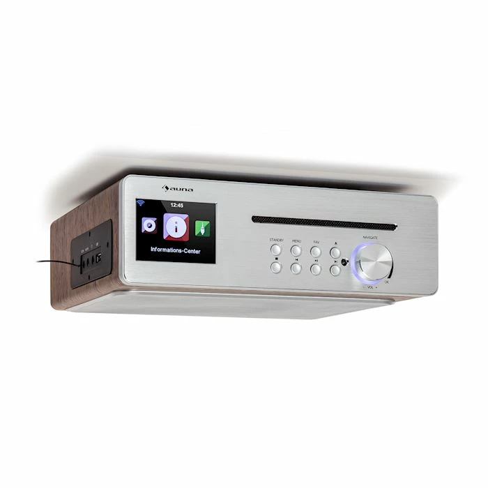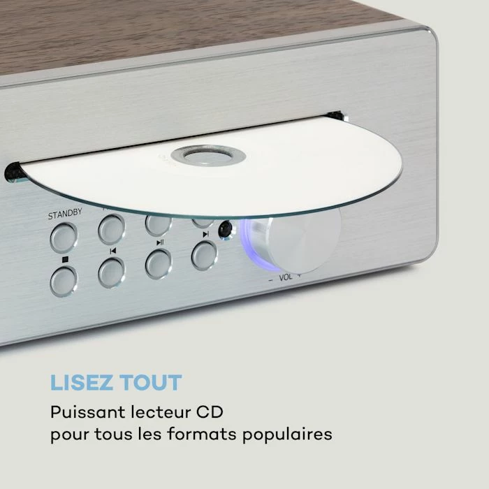 - Elégant et connecté : boîtier imitation bois et port USB pour la lecture des MP3