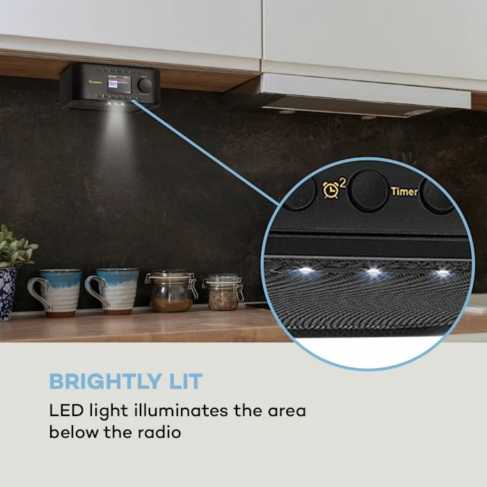 Pour le meilleur plaisir musical dans la cuisine : l’auna Sound Maître DAB Radio de cuisine convainc avec de nombreuses stations de la meilleure qualité, une fonction Bluetooth ainsi qu’un écran couleur HCC bien structuré !