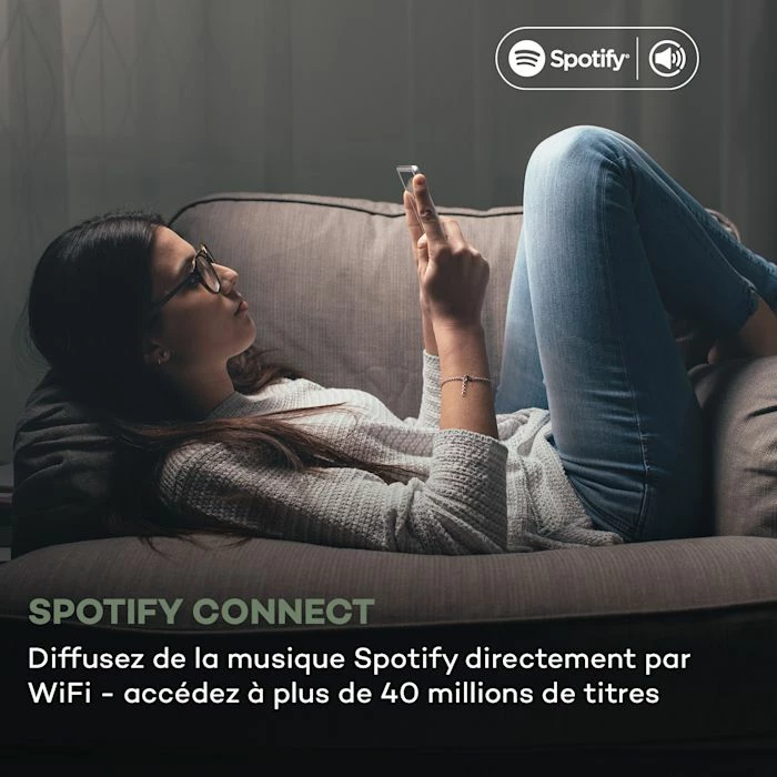 - Spotify Connect : diffusion de musique Spotify directement via Wi-Fi – Accès Ă plus de 40 millions de titres