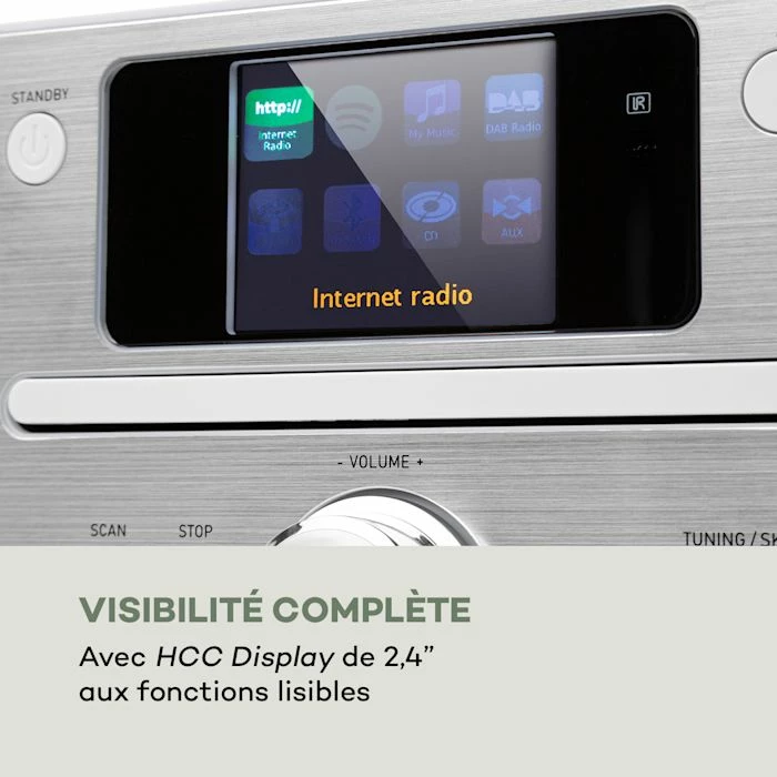 - Parfaitement connectée : radio intégrée Internet/DAB+ et FM avec télécommande