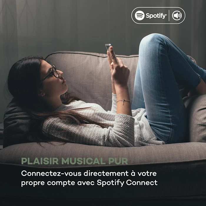 - Pur plaisir d’écoute : Connectez-vous directement à votre propre compte avec Spotify-Connect