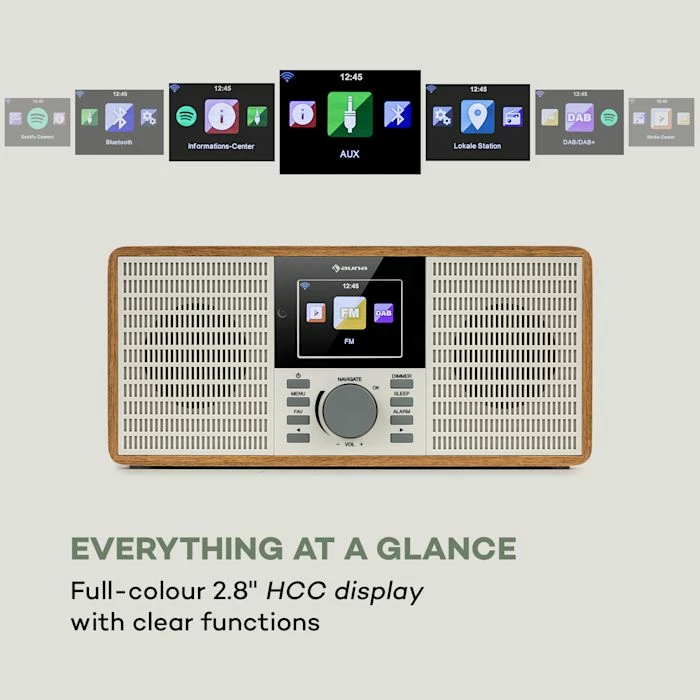 - Réception parfaite : tuner radio Internet, DAB + et FM pour une variété de programmes maximale