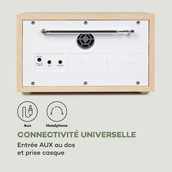 - Nombreuses possibilités de connexion: entrée AUX à l’arrière et connexion pour casque