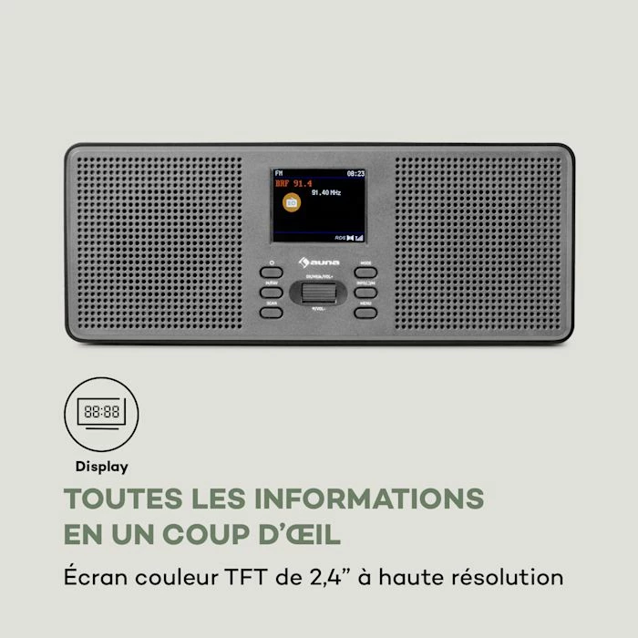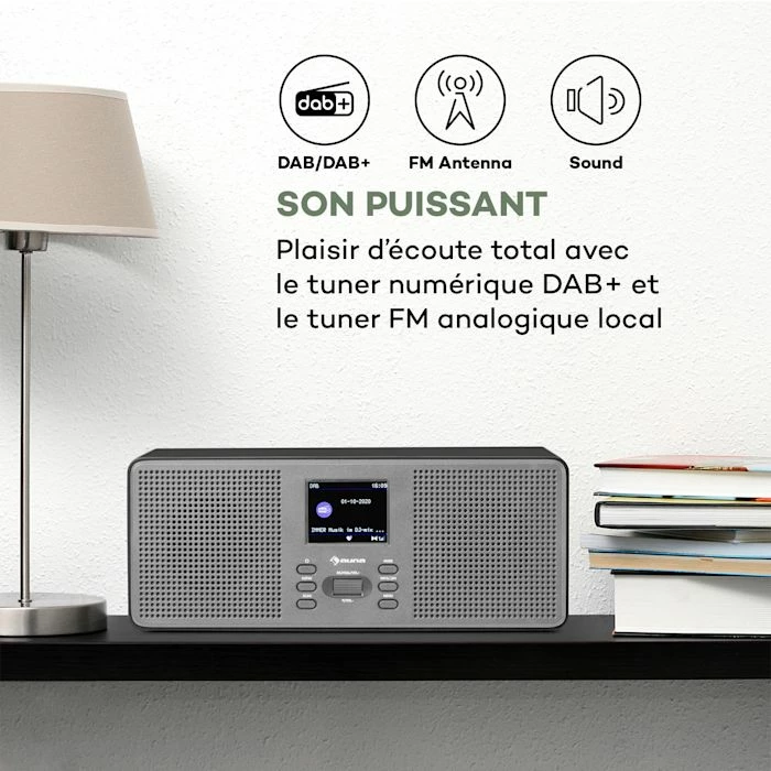 - Son puissant : plaisir d’écoute parfait avec tuner DAB+ et FM local analogique