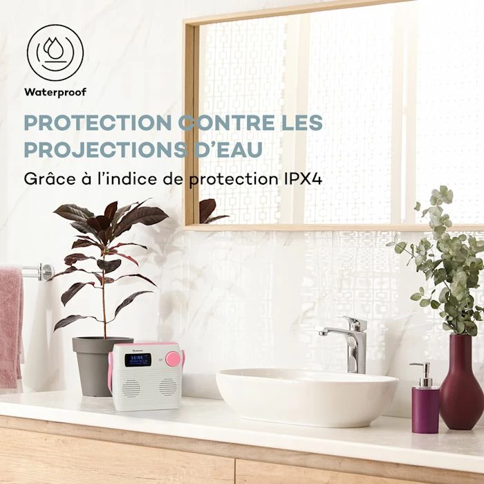 Pour le meilleur plaisir musical sous la douche : la radio de douche auna Splash convainc avec son lecteur CD arrière, de nombreuses stations de radio ainsi qu’une protection fiable contre les éclaboussures !