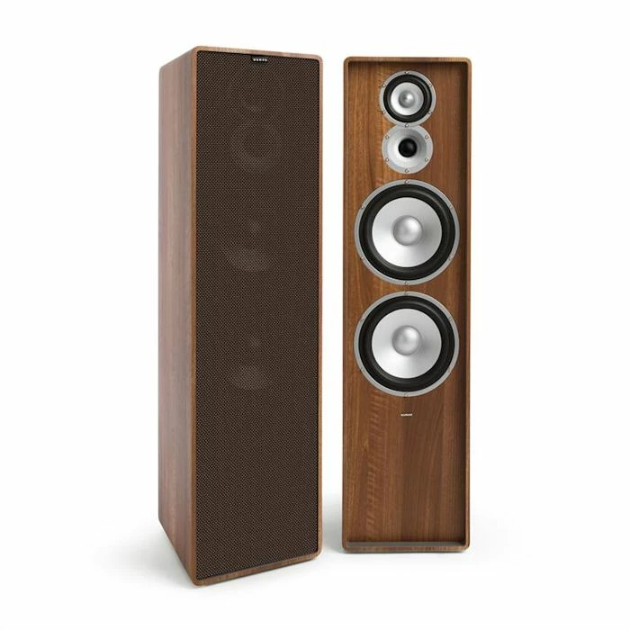 - Deux caissons de graves de 20 cm (8″) et un médium de 10 cm (4″) avec membrane en papier à faible résonance