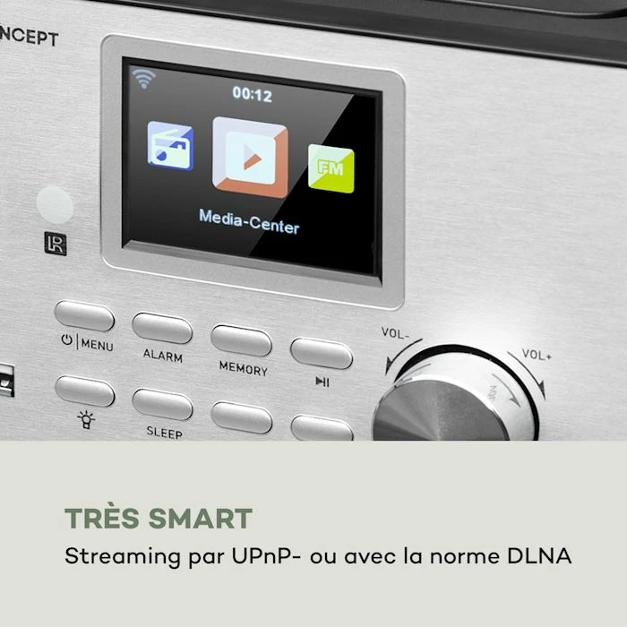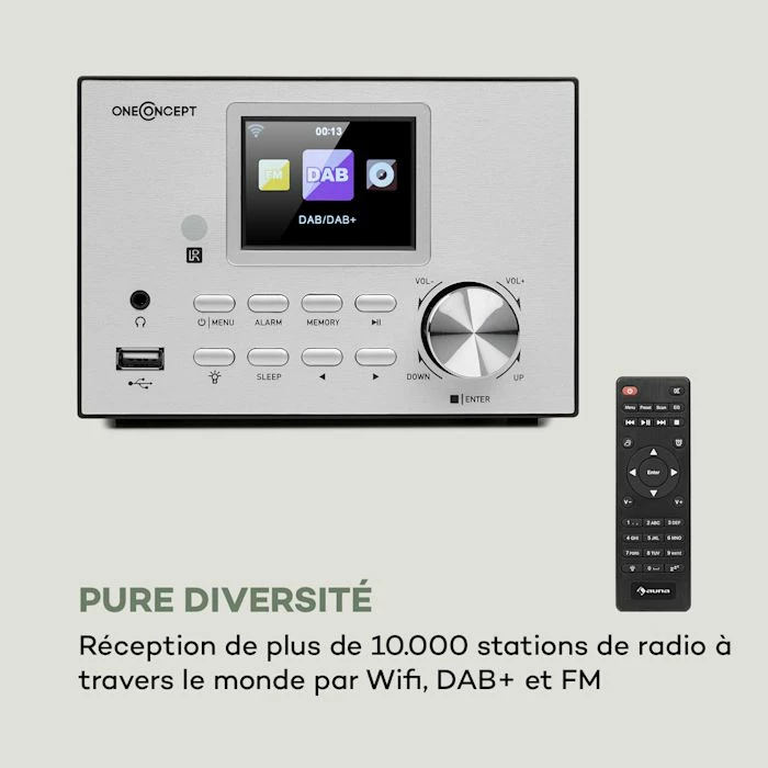 - Grande diversité : réception de plus de 10000 stations de radio à travers le monde par Wifi, DAB+ et FM