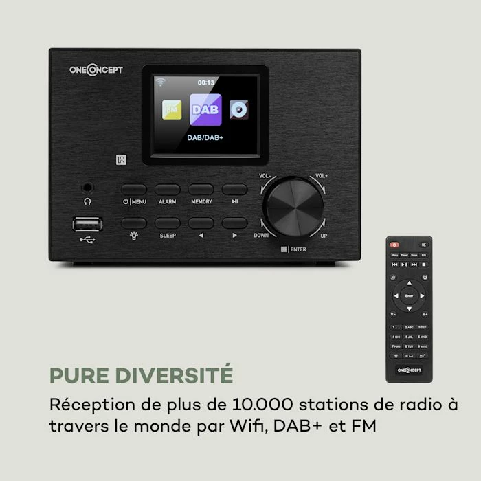 - Grande diversité : réception de plus de 10000 stations de radio à travers le monde par Wifi, DAB+ et FM